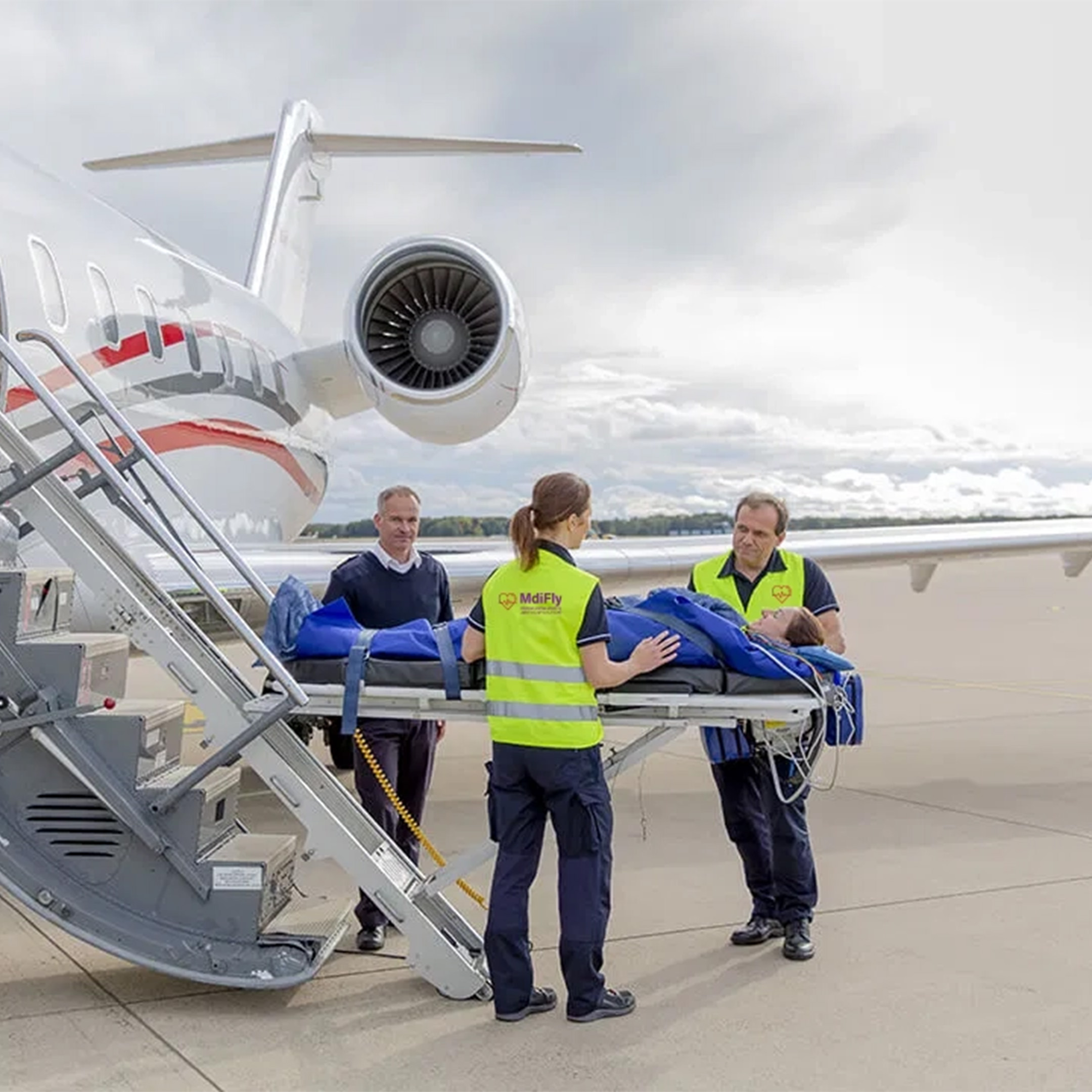 • التنسيق الطبي واللوجستي الكامل: تتولى الشركة من وقت استقبال الحالة استقبال الحالة وحتى تسليم المريض بأمان.